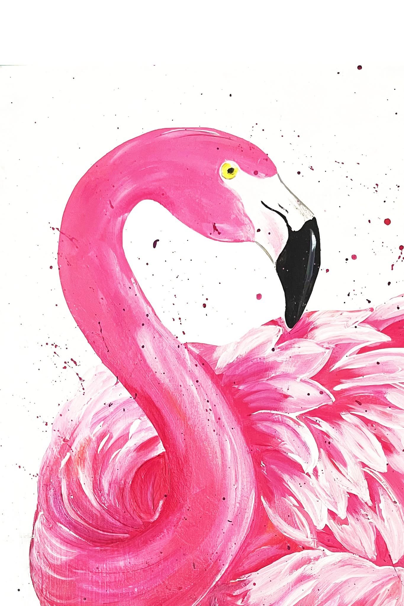 Meet your new favorite wall companion—a vibrant flamingo painting that instantly brightens any space with its bold pink hues and playful brush strokes. This acrylic artwork captures the flamingo's elegance and charm, making it a delightful focal point for your home or office.